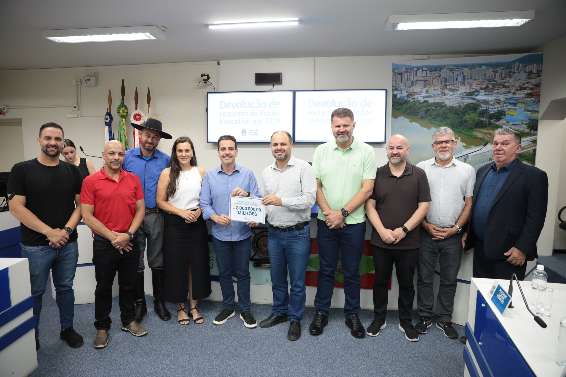 A Câmara de Vereadores de Tubarão realizou, nesta quinta-feira (18), no plenário do Legislativo, o ato oficial de devolução de aproximadamente R$ 8 milhões aos cofres do Poder Executivo. O valor é resultado da economia feita ao longo do ano pela Casa Legislativa, reforçando o compromisso com a responsabilidade fiscal e a boa gestão dos recursos públicos. O montante devolvido é o maior da história do legislativo tubaronense.
